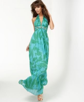 BCBGMAXAZRIA Floral Banded-Waist Halter Gown